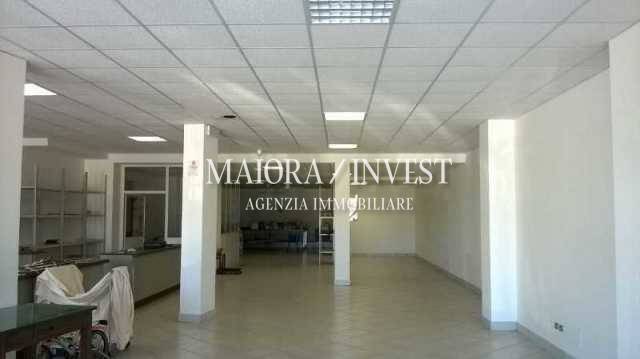 MONTEPRANDONE - In posizione visibile e in zona residenziale, immobile di circa 259 mq di cui 36 commerciali e 223 a deposito. L'immobile con ottime rifiniture dispone di impianti a norma ed ha un'altezza max di 3 mt e minima 2,80 mt. La parte commerciale è posta su strada visibile e dispone di tre ampie vetrine oltre uno spazio antistante come parcheggio, mentre la parte ad uso deposito è posta sul retro e dispone di box ufficio, due bagni ed un ripostiglio. E' presente una canna fumaria, controsoffittatura ispezionabile ed impianto di allarme. Possibilità di rent to buy. Codice riferimento 232. Agenzia Immobiliare MAIORA/INVEST.