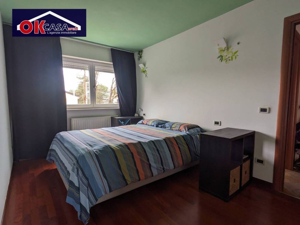 Ampia zona coperta pavimentata esterna (circa 50mq) dotata di tende automatiche, giardino privato (76mq) con impianto di irrigazione e accesso diretto su grande giardino condominiale.