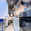 Entrando in casa troviamo una bella zona giorno open space, divisa in area soggiorno ed area pranzo con cucina a vista. Interessante la scelta dei colori delle pareti e dei faretti incassati nel soffitto che rendono molto moderni gli ambienti. Proseguendo troviamo un disimpegno - con una comoda e spaziosa armadiatura - che ci conduce alla camera da letto matrimoniale ed al bagno con doccia.