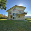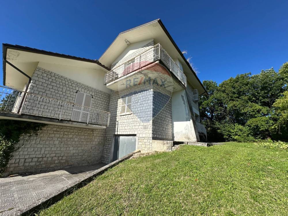Al suo interno si trovano al piano terra un ampio ingresso, un cucinino con tinello e camino, bagno con antibagno, un ampio salone con balcone che permette di godere del paesaggio circostante, una camera da letto matrimoniale o studio; al piano primo un ballatoio, 4 camere da letto, 2 bagni e due balconi; al piano soffitta altri tre vani che potrebbero diventare ulteriori camere per ospiti; piano seminterrato un locale caldaia, una cucina ed un altro locale da utilizzare anche come sala hobby. Completa la proprietà un doppio box auto e di 4 posti auto scoperti.