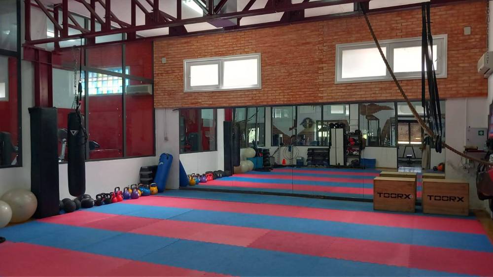 La palestra si sviluppa interamente al piano terra, su una superficie di 378 mq, ogni ambiente è caratterizzato da ampie finestre che garantiscono una buona illuminazione naturale.
