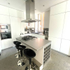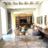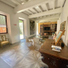 Al primo piano, disposto intorno ad una suggestiva corte interna, troviamo un bellissimo salone con camino con soffitti a travi comunicante con una sala da pranzo da cui si accede direttamente ad una moderna cucina con isola centrale, resa indipendente da grandi vetrate scorrevoli, completata da una lavanderia.