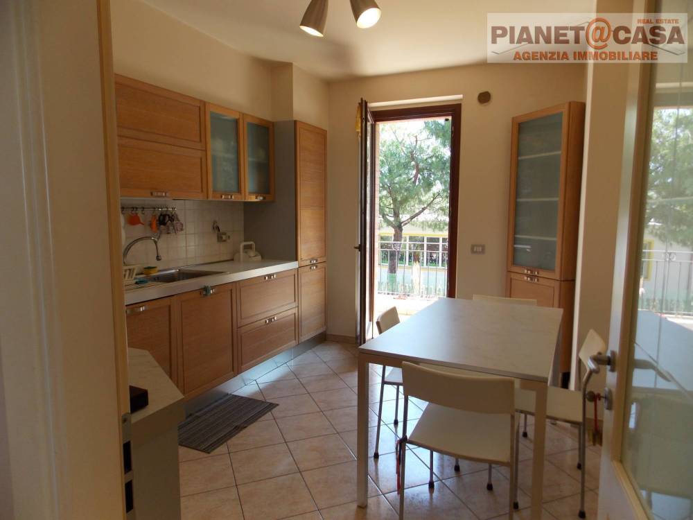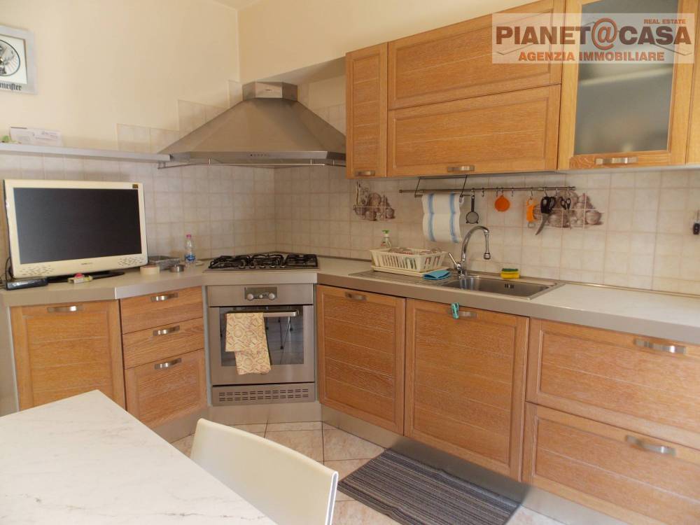 L' immobile, posto al secondo piano con ascensore in palazzina di recente costruzione, è composto da ingresso su ampio soggiorno, cucina abitabile, disimpegno, tre camere da letto di cui una matrimoniale, una doppia, una singola, due bagni di cui uno con box doccia ed uno con vasca, oltre a tre balconi ed una terrazza.