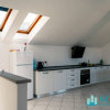 L'appartamento ha una doppia esposizione nord- ovest ed è composto dall'ingresso che si apre sul soggiorno con cucina a vista, con accesso al balcone da un'ampia porta finestra ; un piccolo disimpegno conduce alla zona notte costituita dalla prima camera da letto e dal bagno finestrato dotato di doccia.