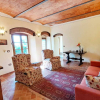 L'immobile risulta così distribuito: al piano terra ampio soggiorno con camini con soffitto a voltine caratteristiche delle case coloniche toscane, taverna adiacente con accesso all'esterno su tettoia (forno a legna funzionante), un locale studio o camera, disimpegno, ripostiglio bagno/lavanderia; al piano primo, con accesso tramite scala interna ed anche direttamente dall'esterno, una camera con servizio, un'ampia camera matrimoniale padronale, un locale soggiorno o camera, un'ampia cucina con camino, bagno, disimpegno, loggia di ingresso. Entrambi i piani, esternamente, hanno spazi autonomi per pranzi/cene all'aperto e zona relax. Data la disposizione del fabbricato sui due piani e la presenza di accessi plurimi l'immobile è facilmente usufruibile e divisibile in due unità immobiliari). Nella vendita è compreso l'arredo presente.