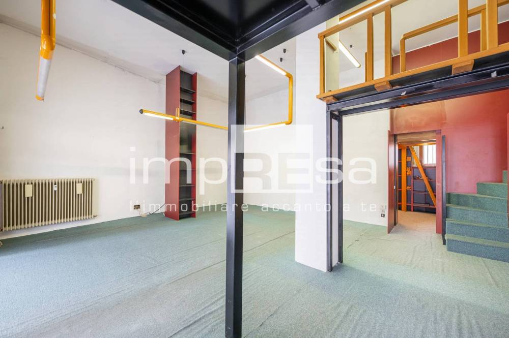 Entrando veniamo accolti da questo ampio spazio nel cui si trovano bagno e ripostiglio; tramite le scale accediamo ad un comodo soppalco che offre la possibilità di un ulteriore ambiente. Le due ampie vetrine danno luminosità e ottima visibilità.