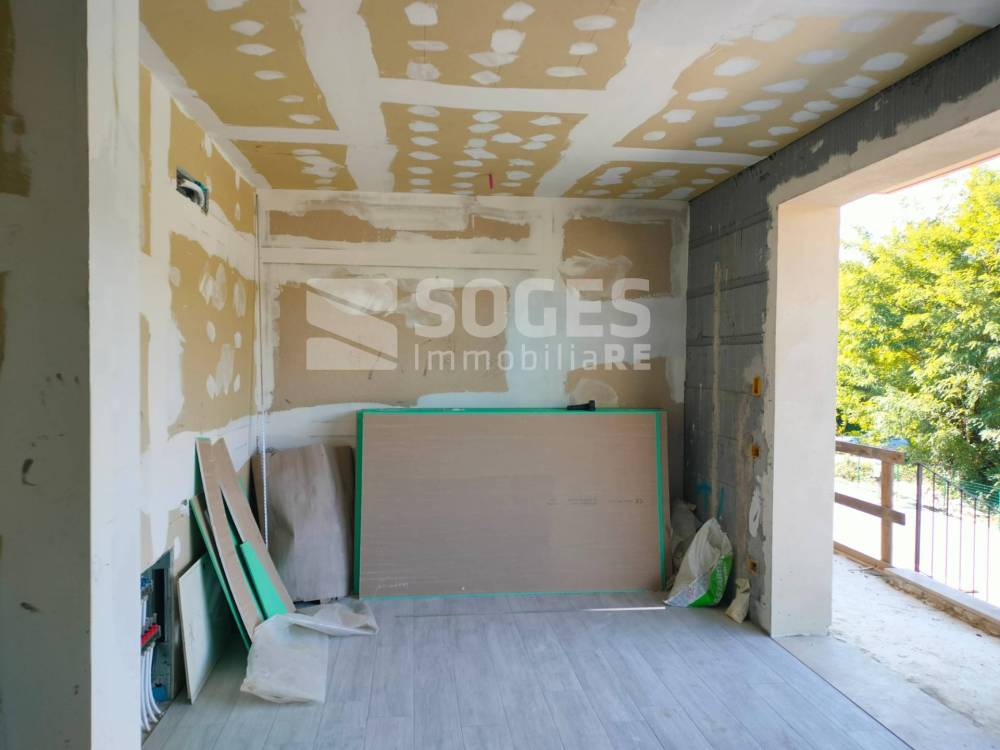 Sant'Ellero, in complesso di villette di nuova costruzione in classe A, appartamento con giardino di 40 mq, disposto al piano rialzato e dotato di taverna al piano terra, per una metratura complessiva di 100 mq, oltre garage di 25 mq posto lateralmente alla taverna, pertanto utilizzabile anche come prolungamento della taverna stessa. Dotato di ingresso indipendente, si compone al piano terreno rialzato di zona giorno open-space con cucina a vista, disimpegno, camera matrimoniale, bagno, terrazzo di 10 mq e giardino di 40 mq; al piano inferiore è dotato di taverna con porta finestra verso l'esterno (pertanto ben utilizzabile sia come seconda camera che come zona giorno, ottenendo un'altra camera al piano superiore), ulteriore bagno e garage. L'appartamento è attualmente in stato di ultimazione lavori (come visibile da foto). Realizzato con elevati standard di fabbricazione ed efficientamento energetico come cappotto isolante, pannelli solari, pannelli fotovoltaici, caldaia a pompa di calore, riscaldamento a pavimento. L'appartamento sarà inoltre dotato di predisposizione per climatizzazione, ed ogni stanza, predisposta per il recupero del calore di scambio (VMC). Possibilità di personalizzazione delle rifiniture come da capitolato. Classe energetica A. - Rif. 47945 - Per Info e visite 055.19936720