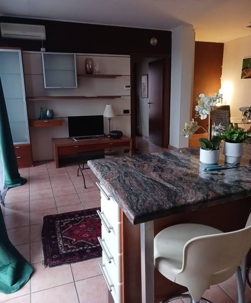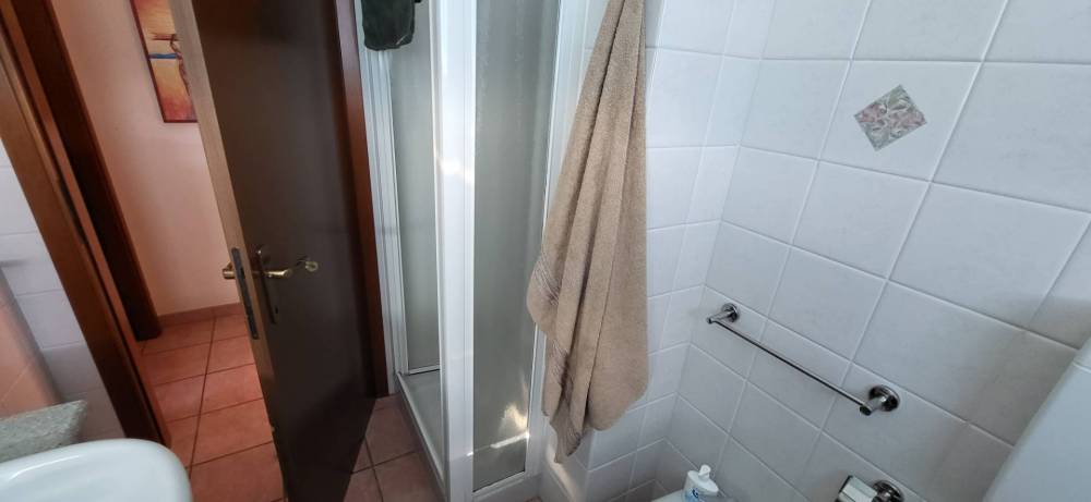 Ingresso, soggiorno con cucina a vista servita da un'Ampio balcone, bagno con doccia, camera da letto matrimoniale con balcone.