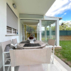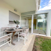 Gli spazi esterni non sono da meno: il giardino, accessibile direttamente dalla serra bioclimatica, si sviluppa su due lati della casa. Un pratico marciapiede ne circonda il perimetro, e lampiezza è tale da permettere linstallazione di un tavolo esterno, perfetto per godere di momenti di relax o convivialità con gli amici.
