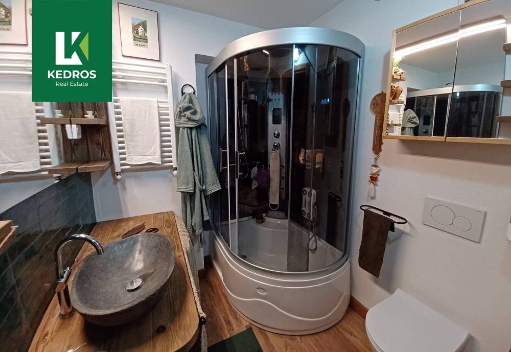 Gli interni sono ampi, luminosi e progettati per offrire il massimo comfort. Il fulcro della casa è la zona living, uno spazio accogliente e raffinato, impreziosito da un camino elegante e da grandi vetrate che incorniciano il panorama montano, creando unatmosfera calda e suggestiva in ogni stagione. La cucina, moderna e completamente attrezzata, si integra armoniosamente con lambiente, mentre le quattro camere da letto, arredate con materiali pregiati, garantiscono privacy e relax assoluto. I bagni, realizzati con rivestimenti di design e sanitari di alta gamma, completano lesperienza di lusso.