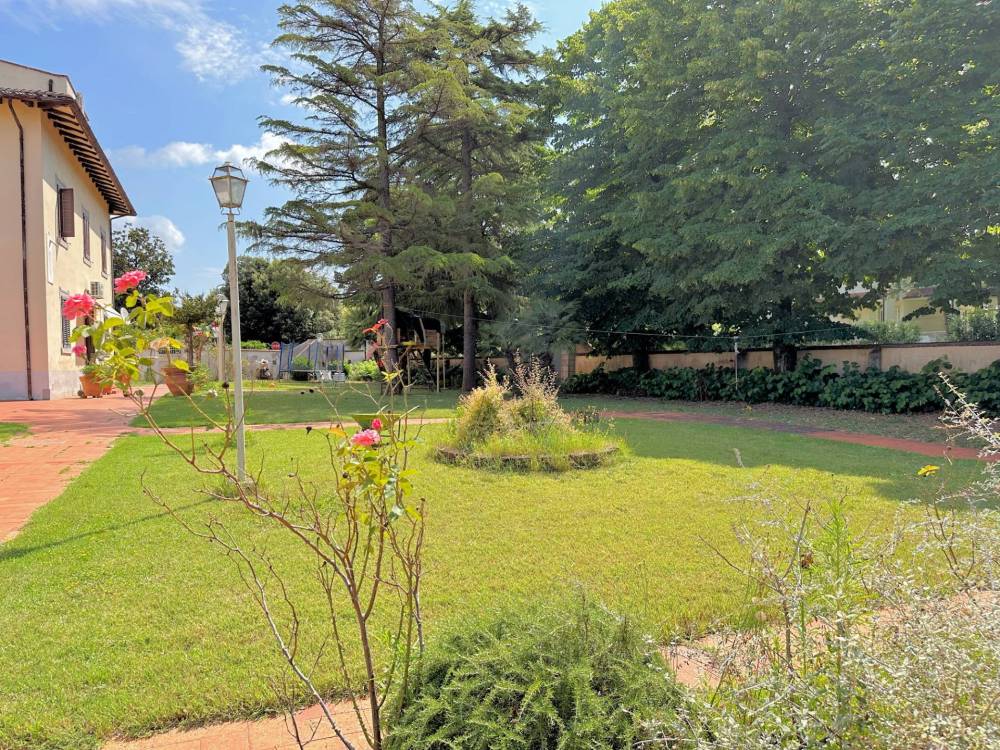 Posizionata in posizione pedecollinare del comune di Bientina in provincia di Pisa, la proprietà è avvolta da un maestoso muro di cinta, e allinterno di esso trova spazio unampia zona verde caratterizzata anche da una casetta sull'albero, due ingressi elettrici, uno dei quali conduce a una zona di parcheggio, un forno a legna, un barbecue e un suggestivo pergolato, ideale per serate estive conviviali.