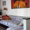 Ampio soggiorno con balcone, cucina con bancone.