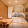 - Piano terra con ingresso indipendente arricchito da fontana ed acquario, ascensore, ampio soggiorno con camino ed angolo bar a scomparsa, splendida veranda chiusa affacciata sul giardino, sala da pranzo, cucina abitabile con dispensa a scomparsa, camera singola attualmente adibita a piccola palestra, 2 bagni.