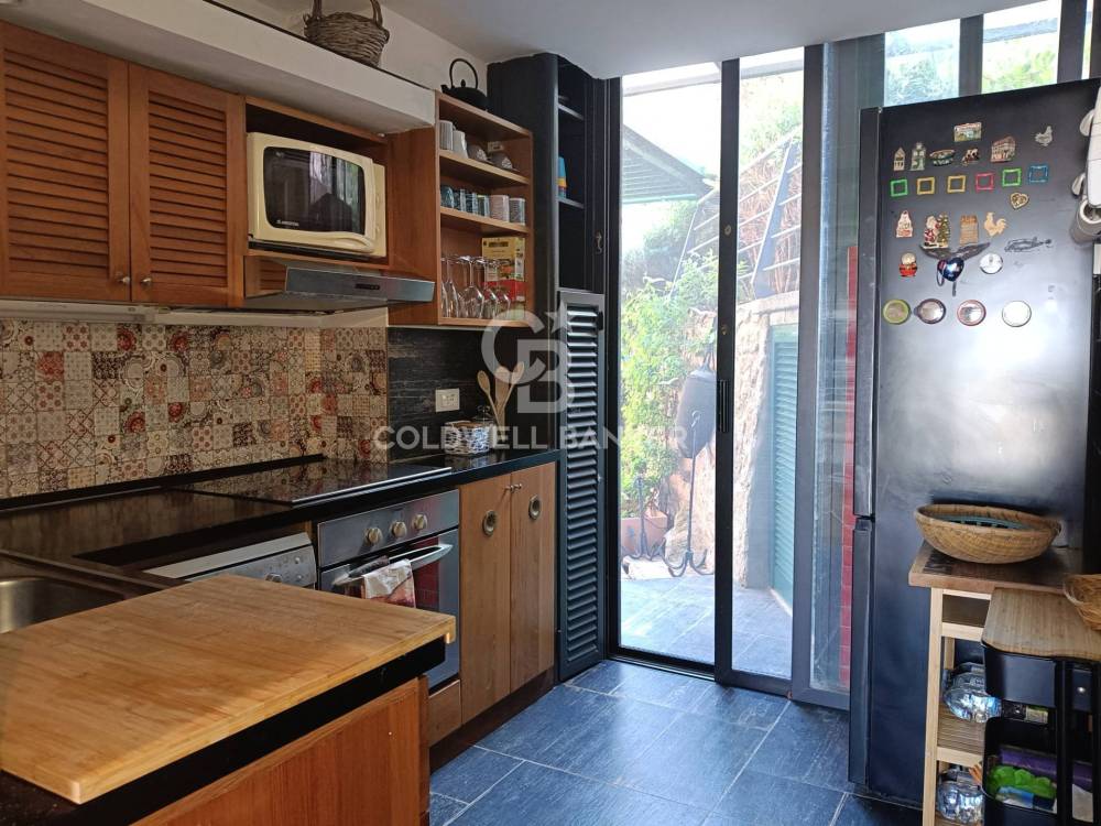 L'appartamento dispone di due camere matrimoniali, di cui una con bagno privato, e un secondo bagno, garantendo privacy e comodità. I soffitti con travi in legno e tavelline aggiungono un tocco di eleganza rustica agli ambienti. Dalle ampie finestre della camera padronale e dalla porta a vetri d'ingresso, si può ammirare il panorama mozzafiato del mare.