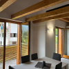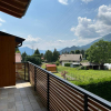 Cucina a vista con accesso diretto su un ampio terrazzo vivibile, perfetto per pranzi all'aperto, con una splendida vista sulla Presolana,