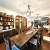 al piano terra: attraversando il curato giardino frontale, si accede allingresso principale accolto da un grande ingresso che divide la zona giorno in due ambienti distinti: da un lato, un elegante soggiorno con area living e tavolo da biliardo; dallaltro, una seconda zona giorno con sala da pranzo, cucina, elegante camino, antibagno e bagno. Al primo piano invece accessibile sia tramite scala interna a chiocciola che da unelegante scala esterna in travertino, ospita un grande ingresso, un ambiente attualmente utilizzato come vano pluriuso ma predisposto per una cucina, tre camere da letto e un bagno.