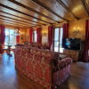 L'intero appartamento è arredato su misura in pieno stile ampezzano, con pavimenti in rovere, pareti e soffitti interamente rivestite in abete.