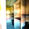 Il bagno, completo di sanitari, doccia e attacchi per la lavatrice, è anch'esso finestrato per una maggiore ventilazione e luminosità.