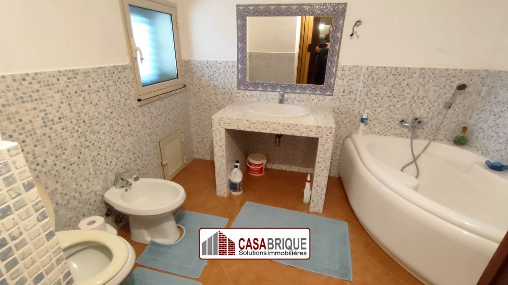 Dal salone attraverso una comoda scala ci si avvia al primo piano dove troviamo due ampie camere da letto con servizio in camera.