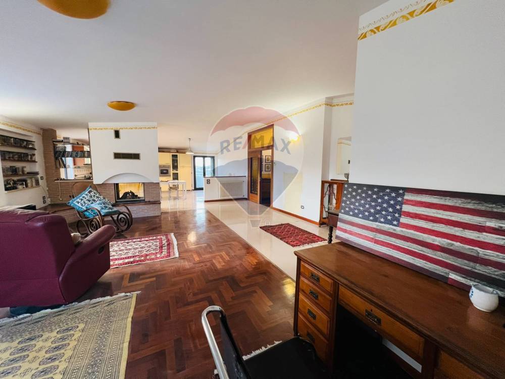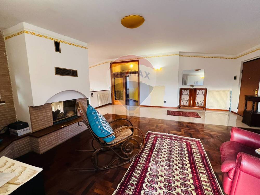 La sua disposizione lo rende particolarmente spazioso e luminoso e si suddivide con un ampio ingresso sul soggiorno ideale per accogliere ospiti e rilassarsi in famiglia, camino con doppia esposizione che divide la zona giorno alla zona cucina (arredata) anch'essa comoda e spaziosa e perfetta per preparare deliziosi pasti in compagnia, dalla porta scorrevole in legno e vetro martellato intarsiato accediamo nella zona notte, dove troviamo il disimpegno, una camera matrimoniale con cabina armadio e ampio servizio, due camere singole e spazioso bagno con doccia.