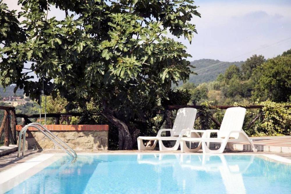Il fabbricato libero su tre lati è circa 270 mq e ha a disposizione un terreno terrazzato di circa 3.000 mq, di fronte alla struttura cè anche una bella piscina con il solarium.