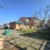 Giardino laterale piastrellato dotato di caricatore per auto elettriche e di un box doppio, situato sul retro della casa.