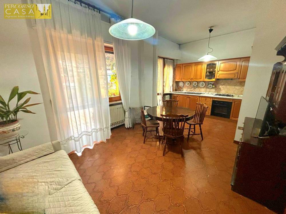 L'appartamento, al secondo piano di un edificio sito nella zona centrale del paese, è composto da ingresso, ampio soggiorno con terrazzo, cucina abitabile, disimpegno, tre camere da letto, 2 bagni e ripostiglio.