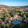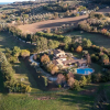Il parco si estende per circa quattro ettari, parzialmente recintato con rete metallica. La proprietà è delimitata da un primo cancello carrabile che, percorrendo un viale sterrato di circa 400 m, conduce ad un elegante cancello in ferro battuto che apre sul giardino e sulla zona parcheggio antistante lingresso principale, impreziosita da un pozzo ornamentale e adatto per tre posti auto. Nel parco sono presenti ulteriori quattro posti auto che godono dellombreggiatura naturale di piante rampicanti. La villa è provvista inoltre di garage per tre posti auto. La ricca e variegata vegetazione conta cespugli come lavanda, rose, biancospino e rigogliosi alberi come aceri, tigli, ciliegi e ulivi. Nellampio giardino sono presenti diverse zone relax oltre che (ad un livello inferiore rispetto alla villa) una zona a prato adibita a campo da calcio.
