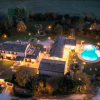 La piscina si trova a circa 20 m dalledificio principale, è esposta ad est, in una zona soleggiata dal mattino al tramonto. La vasca, di forma irregolare, misura 18 x 11 m, è rivestita in pvc azzurro. È dotata di trampolino e di una area vasca delimitata per i bambini. Ha una profondità minima di 50 cm e massima di 270 cm sotto il trampolino. Vi si accede tramite gradoni o con una scaletta metallica. La piscina è depurata a cloro e provvista di illuminazione interna, presente anche nellarea circostante. La zona solarium a prato, e in piccola parte pavimentata, è attrezzata con lettini, sdraio, ombrelloni e una doccia esterna rivestita in mosaico dotata di acqua calda.