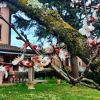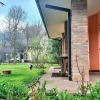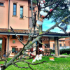 Giardino piantumato su tre lati di 300 mq con camino e barbeque e orto.