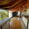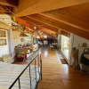 Entrando l'atmosfera è piacevole e accogliente. Il soffitto in legno con travi a vista dona calore e stile ed il pavimento in parquet aggiunge eleganza e comfort agli spazi aperti.