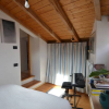 La soluzione si sviluppa su tre livelli fuori terra ed è composta da: P:T: portico con affaccio sull'area esterna privata, ripostiglio adibito a bagno/lavanderia, box, P.1°: soggiorno con camino, cucina abitabile con balcone che affaccia sul cortile privato e studio; P.2° camera, bagno, disimpegno, sottottetto con travi a vista adibito a camera e uno spazio di servizio extra utilizzabile come ripostiglio.