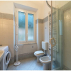 Il bagno è pratico e funzionale, con doccia e lavatrice.