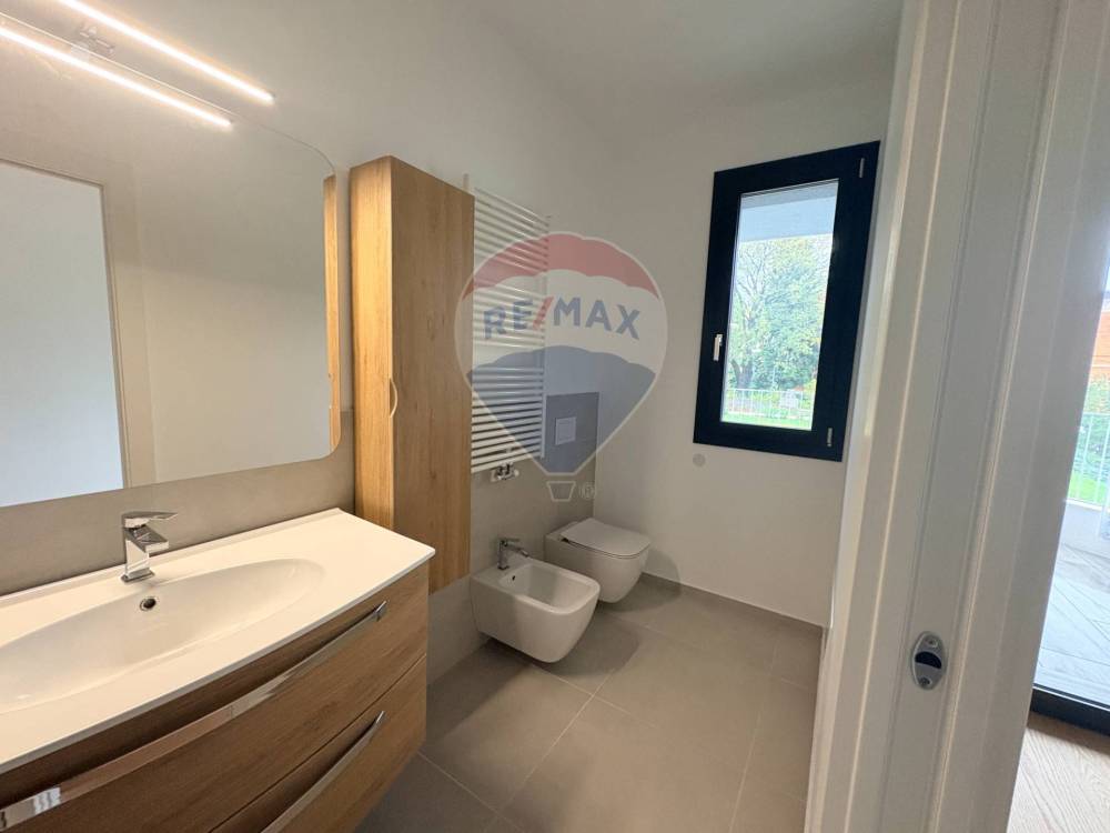Costruito a fine del 2023 con tecnologie all'avanguardia (CLASSE ENERGETICA A4), lo stabile che ospita l'appartamento offre un'esperienza di vita moderna e confortevole. L'abitazione si sviluppa su una superficie totale di 81 mq commerciali interni e 16 mq esterni tra terrazzo e patio (coperto e abitabile fornito di acqua e presa elettrica). L'interno è composto da un'ampia zona giorno con cucina a vista (quella in foto è acquistabile a parte oppure verrà tolta), una spaziosa camera da letto con bagno completo finestrato (rimane arredato come da foto incluso nel prezzo) e una comoda zona dove creare una cabina armadio. C'è un secondo bagno spazioso completo di tutti i sanitari e zona lavanderia.