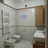 Grande stanza da bagno, rifinita con materiali pregiati e caratterizzata da un pavimento blu intenso, che richiama immediatamente il mare e lestate