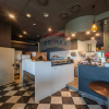 Si sviluppa su una superficie open space di 375 mq al piano terra, divisa funzionalmente con cucina a gas, reparto pizza con forno a gas e servizi igienici con lavandino al piano.