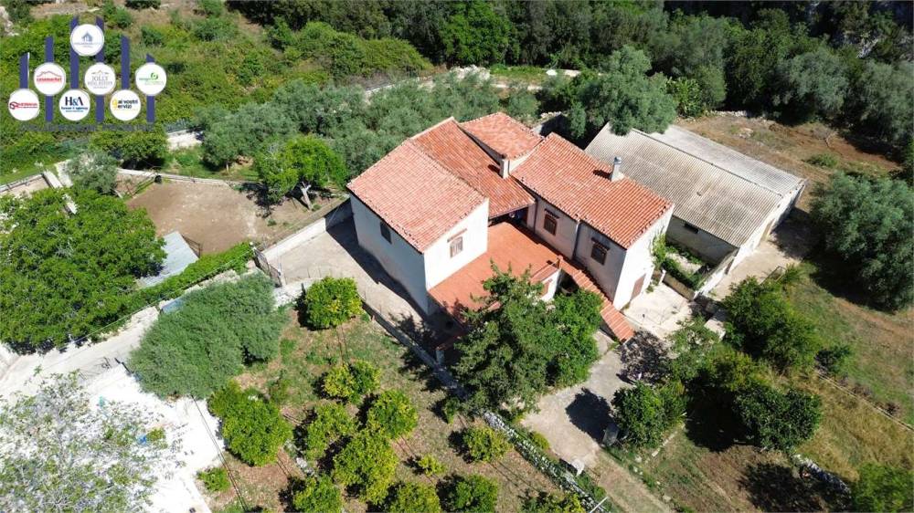 La villa situata nella contrada Condotte, è circondata da una distesa di rigoglioso terreno che ha una superficie di circa 15.000 mq, attualmente coltivato ad uliveto e mandorleto, in parte pianeggiante ed in parte a terrazzamenti che arrivano fino alla Valle dell' Anapo, grande riserva naturale e luogo magico, tra i piu suggestivi e rilassanti.