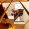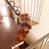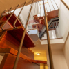 Una scala autoportante in legno massello, dal design elegante e funzionale, conduce alla zona notte.