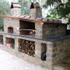 Nel giardino davanti casa è presente un gazebo coperto dai glicini, due alberi di alto fusto che ombreggiano efficacemente la facciata, un mandorlo, olivi, ciliegio, ecc.; nel giardino laterale, che ospita tre posti auto, si trova anche il grande forno per pane e barbecue. Sul retro della unità principale si trovano: lampio resede (protetto dalla tettoria motorizzata) dove è possibile mangiare allaperto; lorto e lannesso in legno, olivi e piante da frutto.