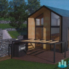 L'accuratezza nei dettagli si apprezza in particolar modo nella scelta dei materiali che comprende pareti esterne ed interne coibentate in legno color noce, listoni in teck/wenge trattato per la pavimentazione dei dehors, lamiera grecata coibentata grigio antracite per la copertura e serramenti vetrocamera in alluminio nero ideali per l'isolamento termico e acustico.