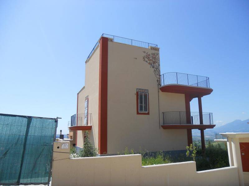 Offida, zona collinare, villa di nuova costruzione disposta su quattro livelli: piano interrato rustico di mq 45, garage, bagno e lavanderia, piano terra ampio soggiorno, cucina, bagno e camera / studio, piano primo tre camere, bagno e ripostiglio, inoltre al quarto piano troviamo due terrazze panoramiche. La cucina ed il rustico hanno entrambi la predisposizione per canna fumaria; su tutti i piani sono presenti amie logge (esposizione a sud). Giardino di mq 660 completamente recintato.