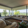 Al piano terra, uno spazioso ambiente accoglie un salone impreziosito da ampie vetrate, una cucina abitabile, una camera da letto, un bagno, uno studio; la zona living si affaccia sul paesaggio mozzafiato delle colline e sul giardino, circondato da ulivi ed alberi da frutto, mentre il portico di 100 mq con zona barbecue coperta diventa il luogo ideale per ritrovarsi con amici e familiari.