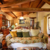 Le travi a vista, dal colore caldo e naturale, adornano il soffitto, aggiungendo un tocco rustico ed elegante all'interno.