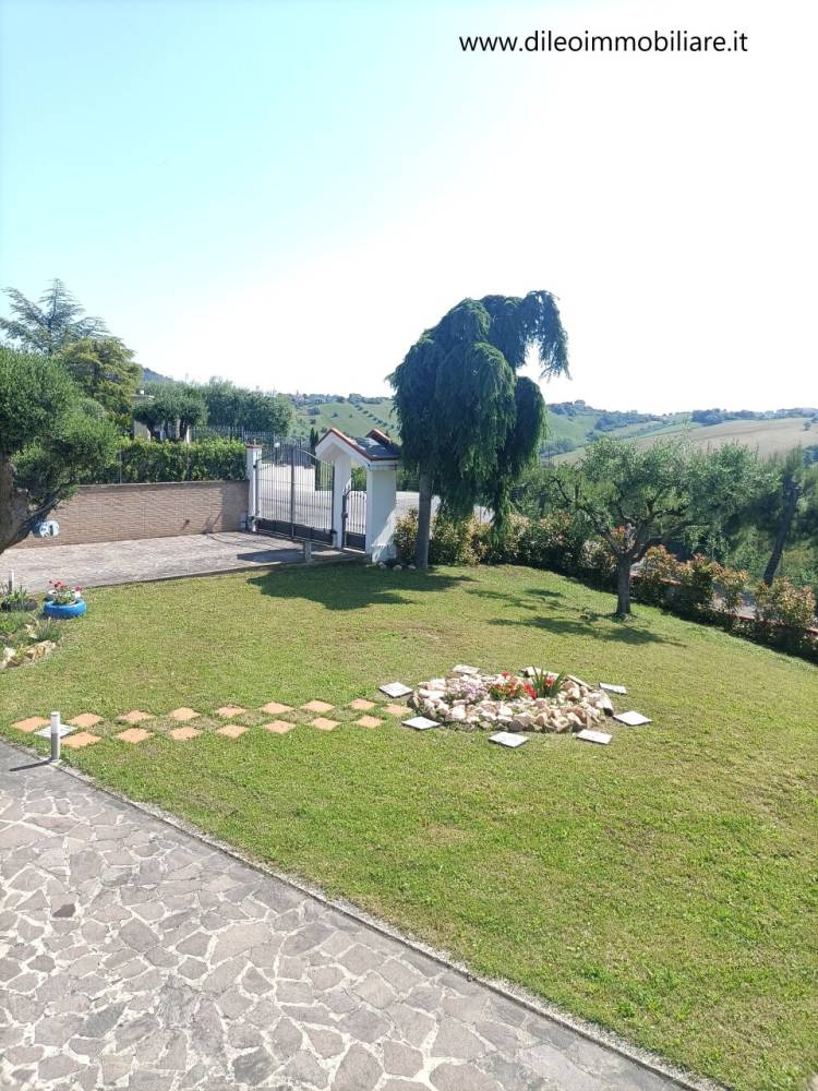 MONTEPRANDONE - in zona collinare a circa 9 km dal mare, casa indipendente di circa 340 mq su tre livelli. L'immobile è composto da: piano terra di circa 130 mq al grezzo attualmente adibito a deposito e garage di circa 13 mq; piano primo di mq 130 circa con ingresso su soggiorno che affaccia su un ampio terrazzo di circa 50 mq, sala da pranzo, cucina, due camere matrimoniali, un bagno con finestra e doccia, una lavanderia; piano sottotetto di circa 130 mq con altezza max 2.70, allo stato grezzo. Completano la proprietà tre balconi per un totale di circa 17 mq ed un giardino di circa 2100 mq in parte piantumato, molto curato e completamente recintato con cancello elettrico. Ha infissi in legno con doppio vetro, aria condizionata, impianto fotovoltaico di 6 kw. Riferimento agenzia 6570. DiLeoImmobiliare