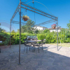 Sul retro della villa un gazebo in ferro battuto offre il giusto spazio per pause allaperto nella tranquillità e nella privacy totale.