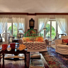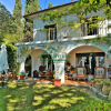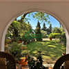 Il parco, di circa 8.400 mq, è interamente recintato e presenta piccole radure, aree verdeggianti con essenze ornamentali e alberi di alto fusto, oltre a zone dedicate a olivi e alberi da frutto. L'accesso alla villa avviene tramite un cancello che conduce, lungo una strada interna, sia alla residenza principale che alle dipendenze, con ampie zone parcheggio per gli ospiti.