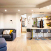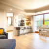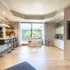 Entrando nell'appartamento si accede allo spazioso living con affaccio sul giardino privato, separata ma a vista sul soggiorno troviamo l'ampia cucina abitabile, sala da pranzo con vista sul giardino e ampio portico coperto con tavolo esterno.