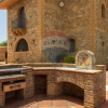 In the courtyard of the house there are two gazebos, a barbecue area and numerous sandstone finishes, and carved stone masks.