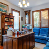 L'ingresso principale conduce a un ampio soggiorno di 80 mq con camino, reso luminoso da una grande porta finestra che dà accesso al giardino. La zona giorno è completata da una cucina abitabile, uno studio, una lavanderia e due bagni.