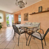 Varcando l'ingresso si è accolti da un luminoso soggiorno, completato da angolo cottura separato e da una splendida zona pranzo completamente finestrata con accesso diretto al verde esterno.